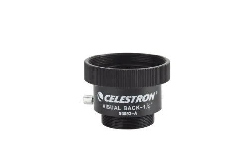– Visual Back es un adaptador de metal que se atornilla a las roscas de la celda trasera estándar de los telescopios Schmidt-Cassegrain y Maksutov-Cassegrain, acepta accesorios de 1,25″ y diagonales.