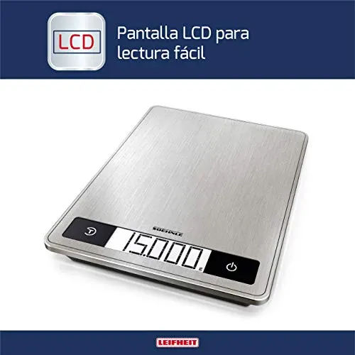 La báscula de cocina Soehnle Page Profi 200 es ideal para aquellos que buscan precisión y elegancia en su cocina. Con su superficie extraplana de acero inoxidable de alta calidad y revestimiento antihuellas, esta báscula portátil se mantendrá limpia durante más tiempo. Además, cuenta con una pantalla LCD iluminada extragrande para facilitar la lectura de las cifras, incluso en condiciones de poca luz.