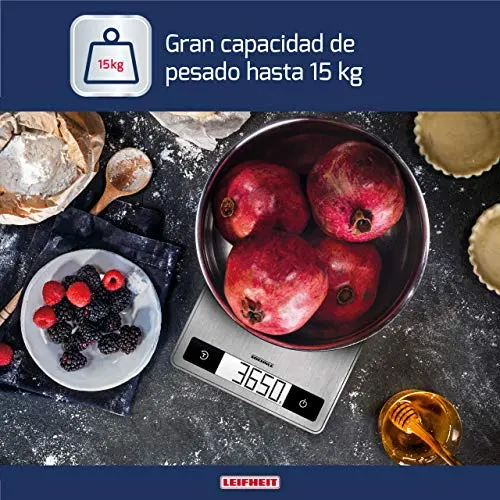 La báscula de cocina Soehnle Page Profi 200 tiene una capacidad de carga de hasta 15 kg y cuenta con una precisión de 1 g gracias a su función de tara. De esta manera, podrás añadir nuevos ingredientes con facilidad y sin tener que preocuparte por la precisión.