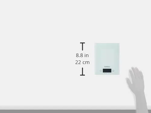 La báscula digital Kenwood DS401 destaca por su diseño, fabricada en vidrio blanco reforzado que la hace resistente y fácil de limpiar. Sus dimensiones de 22 x 17 x 1.8 cm y su peso de 530 gramos la hacen compacta y fácil de guardar.