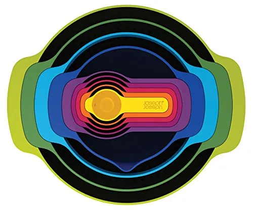 El juego de cuencos y tazas Joseph Joseph Nest 9 Plus es la solución perfecta para ahorrar espacio en tu cocina. Con 9 piezas apilables, este juego es la colección definitiva de utensilios de cocina que permiten ahorrar espacio. Su diseño único permite que los elementos individuales que componen cada juego se puedan apilar juntos de forma ordenada, por lo que ocupan el mínimo espacio posible.